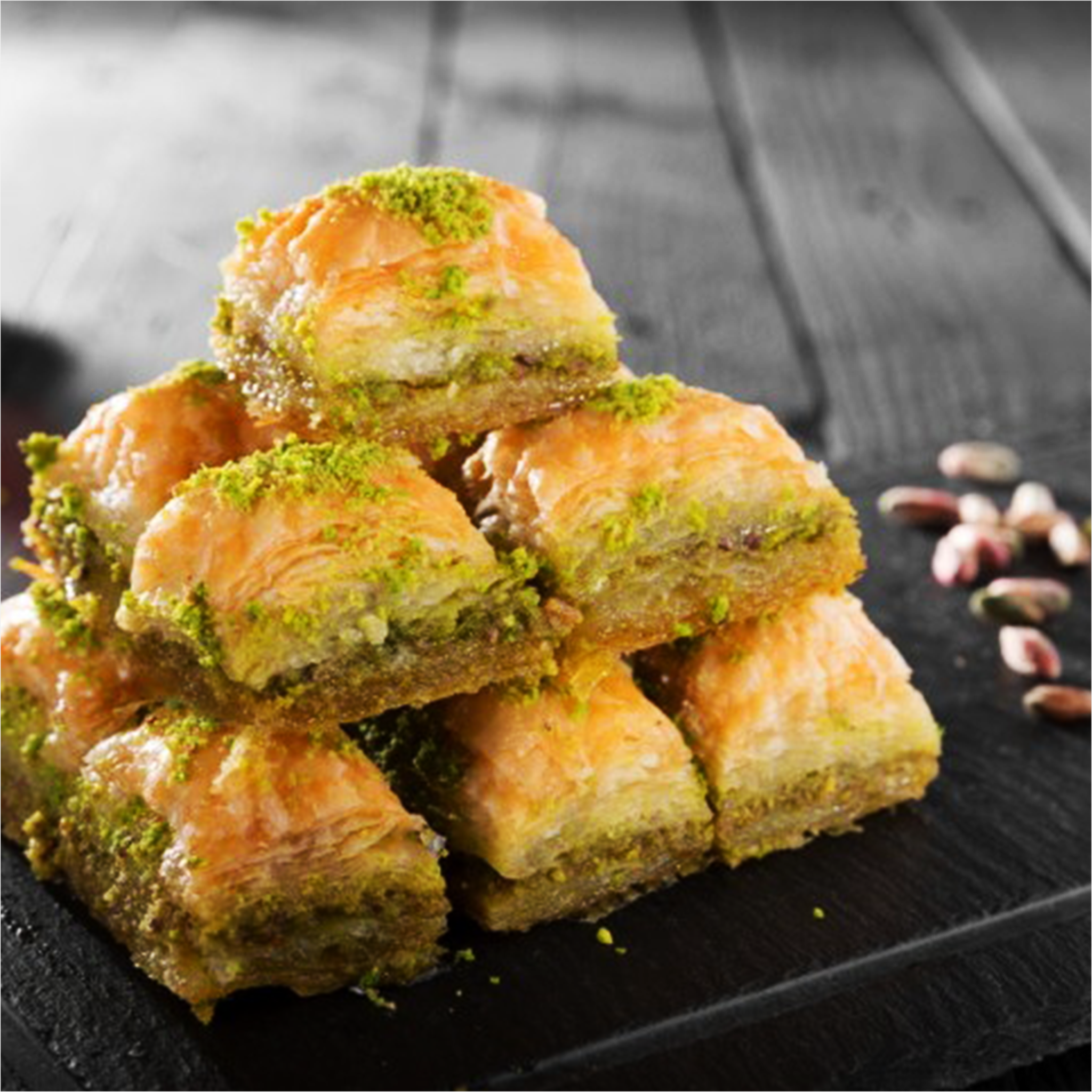نصف كيلو غرام من حلويات البقلاوة بالفستق الحلبي الفاخر و السمن العربي من محلات ديوان مهنا الفاخرة
