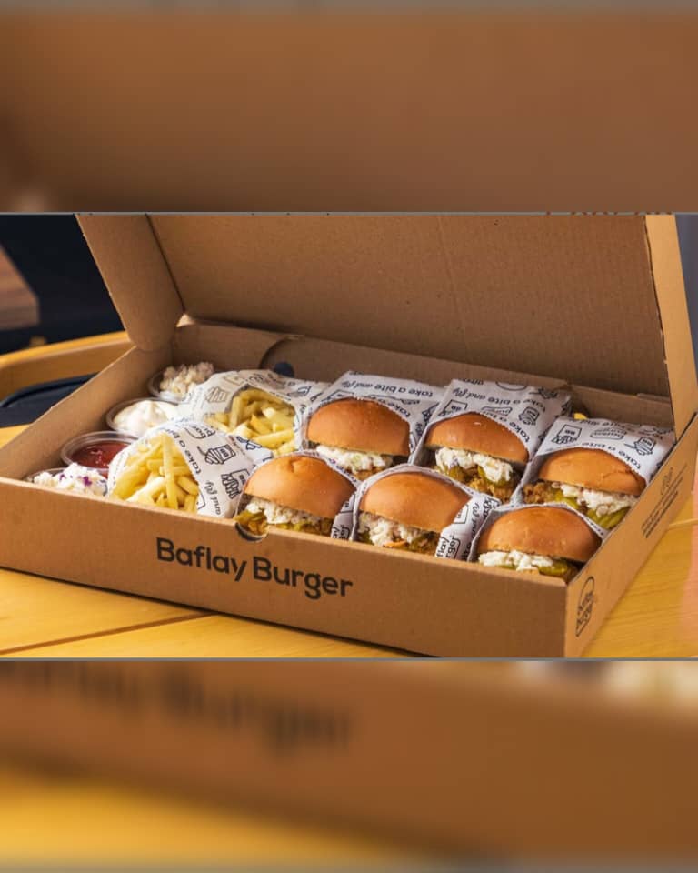 بوكس ميني برغر دجاج يحتوي على 6 سلايدر دجاج – 2 بطاطا -2 كول سلو – مايونيز – كتشب