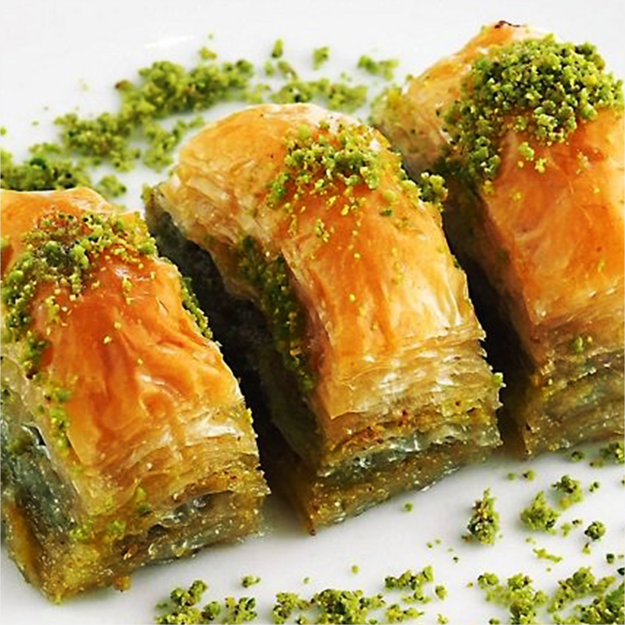 نصف كيلو غرام من حلويات البقلاوة بالفستق الحلبي الممتاز و السمن العربي من محلات نبيل نفيسة