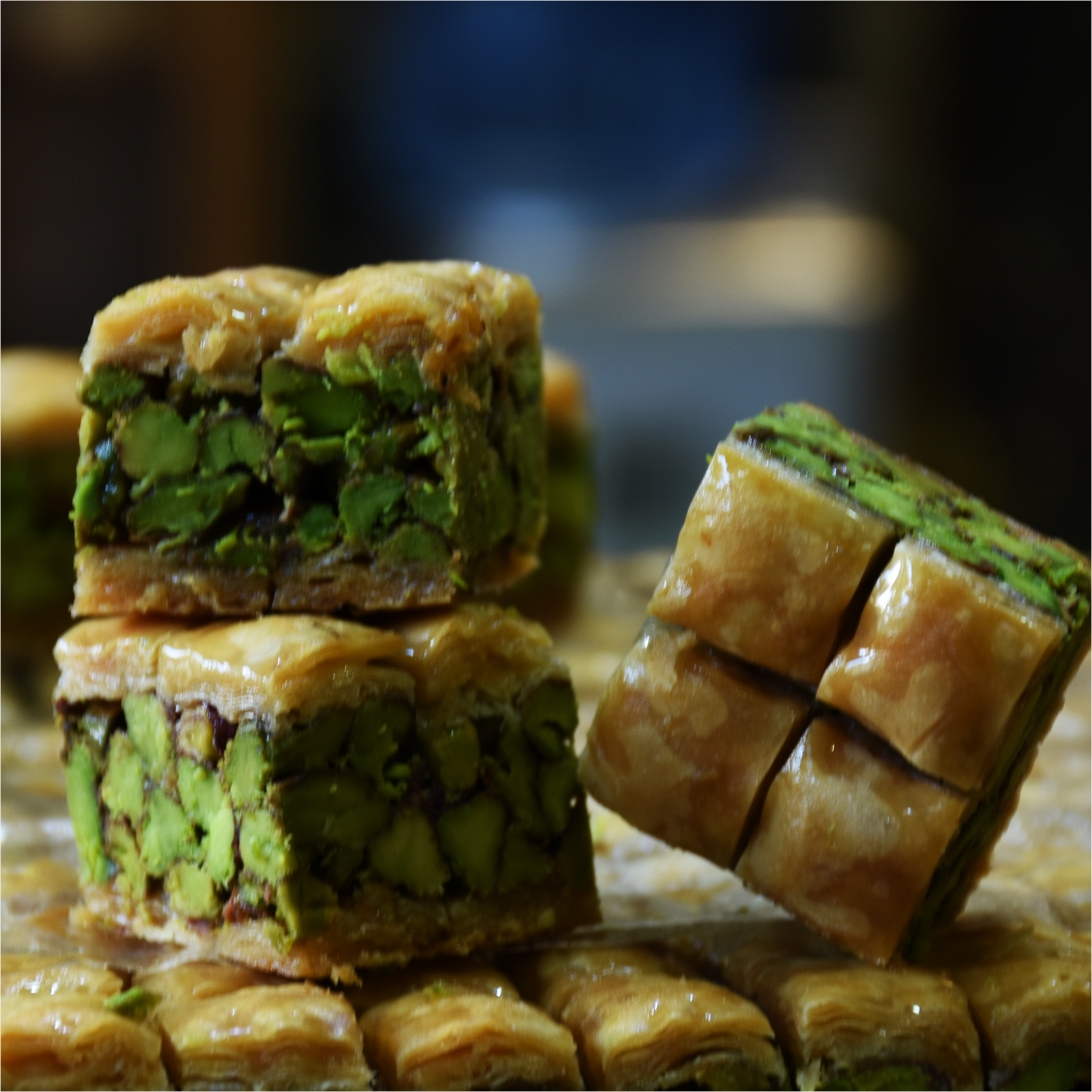 نصف كيلو من حلويات الآسية المحشوة بالفستق الحلبي الممتاز و السمن العربي من محلات نفيسةالفاخرة