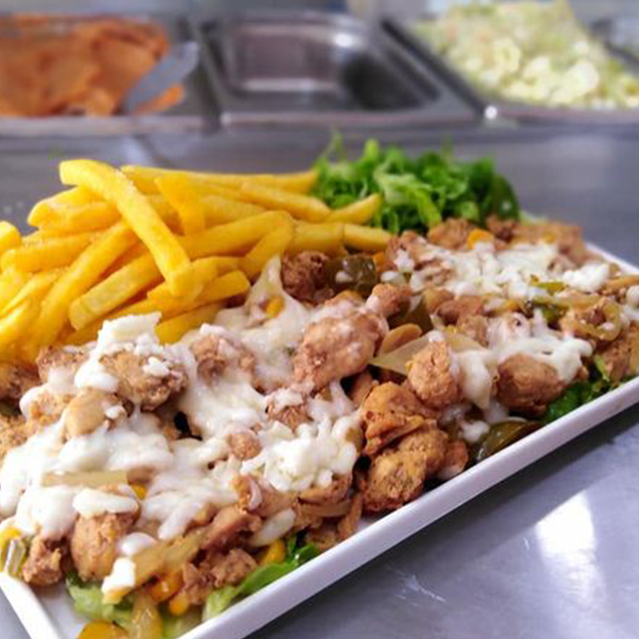 وجبة واحدة مكونة من قطع دجاج – صوص بلانش -جبنة – ذرة (تقدم مع بطاطا و باستا خضار وكول سلو وسلطة ذرة وخبز)