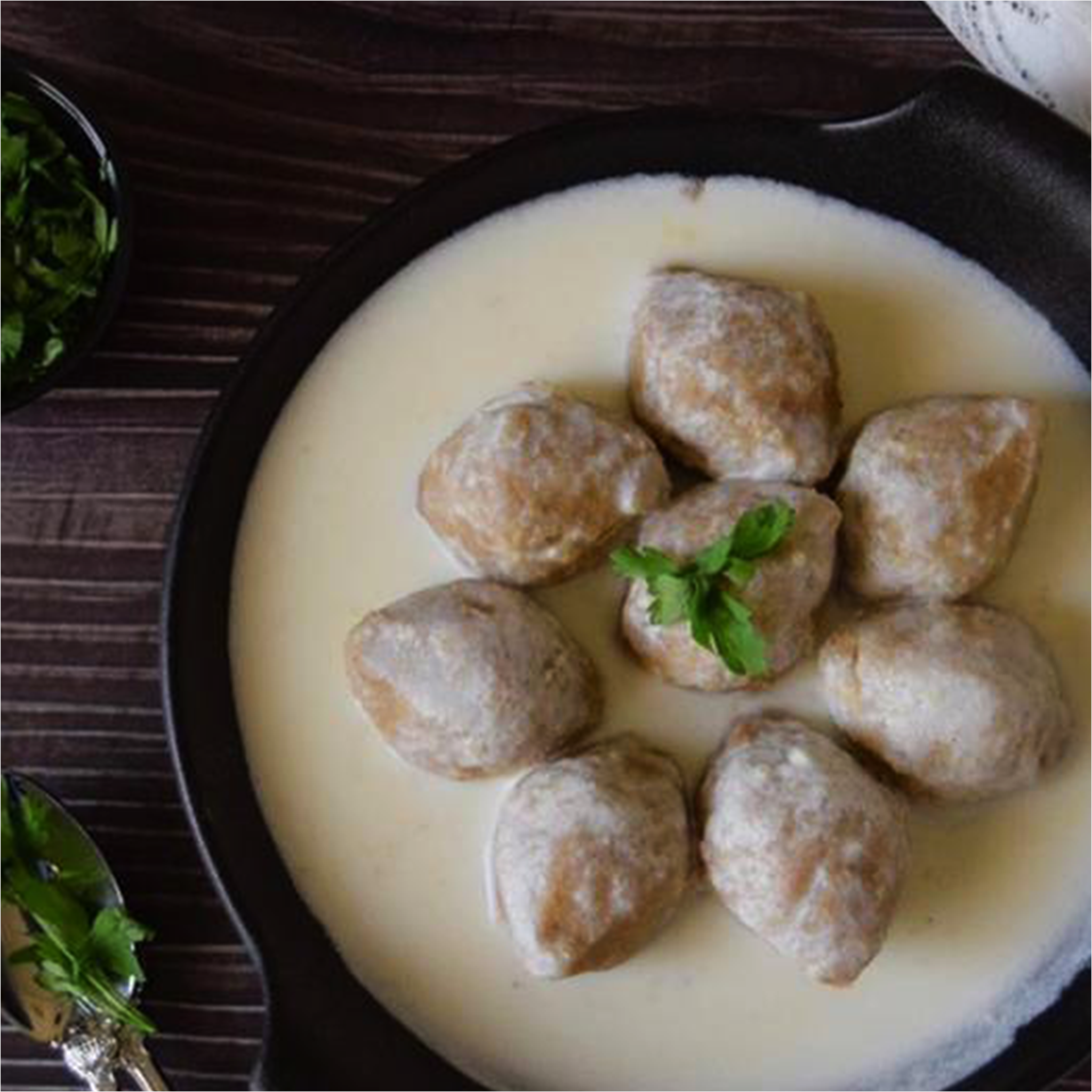 علبة تحتوي سبع أقراص من الكبة مع اللبن المطبوخ من مطبخ الوسام
