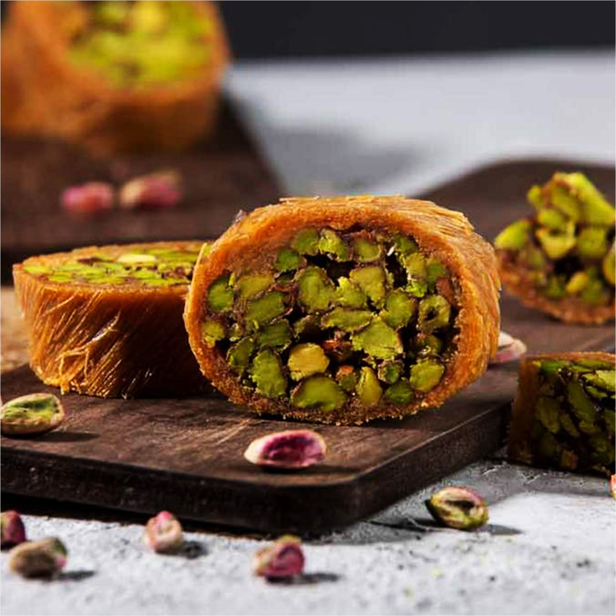 نصف كيلو غرام من حلويات المبرومة بالفستق الحلبي الممتاز و السمن العربي من محلات نبيل نفيسةالفاخرة