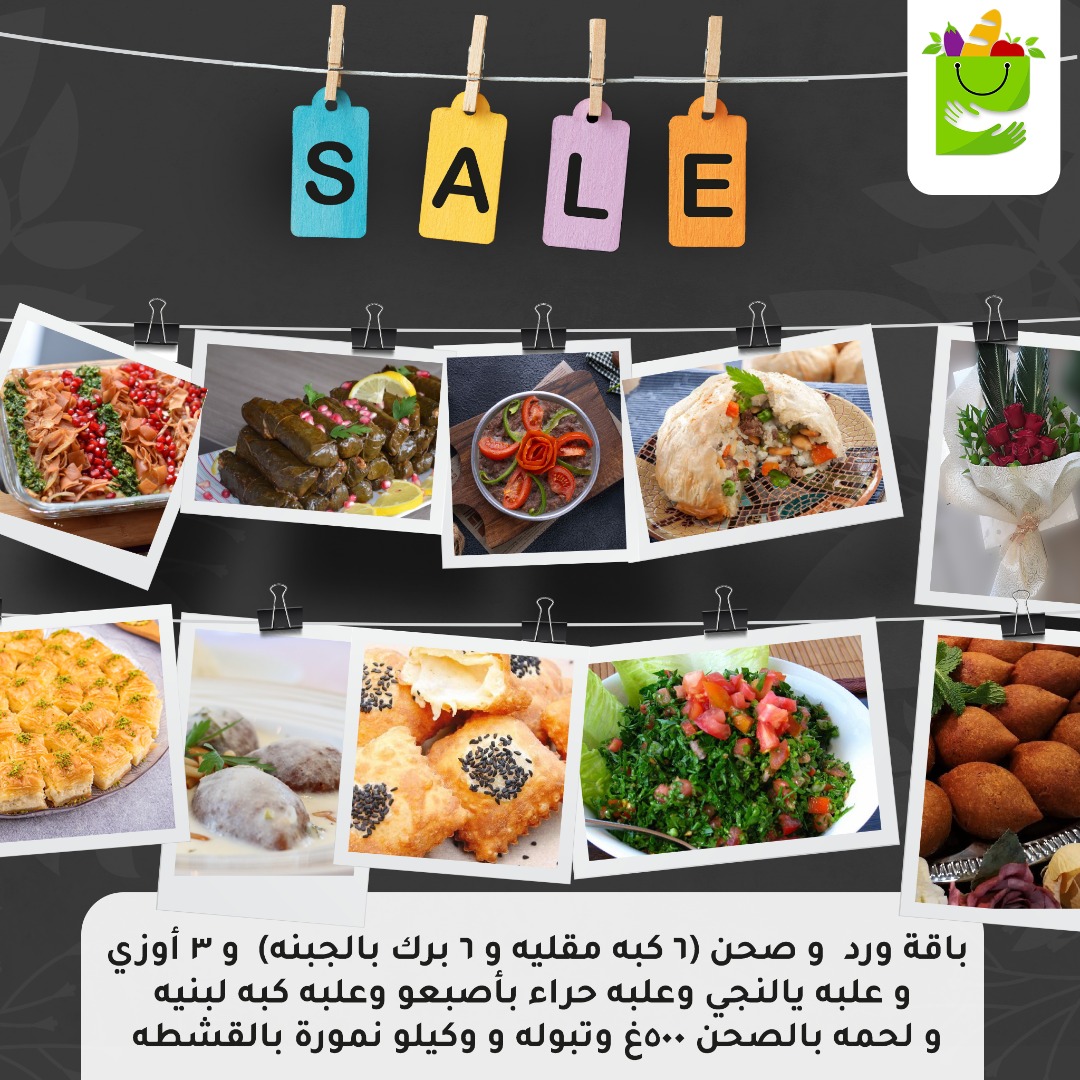 500 غرام لحم بالصحن (غنم)مطعم فتوح+صحن (6 كبة مقلية+ 6برك بالجبنة)+3 أوزي +علبة يالنجي+علبة حراء بأصبعو+علبة كبة لبنية+تبولة +واحد كيلو نمورة من محلات الوسام و باقة ورد ( الطلب قبل 24 ساعة)