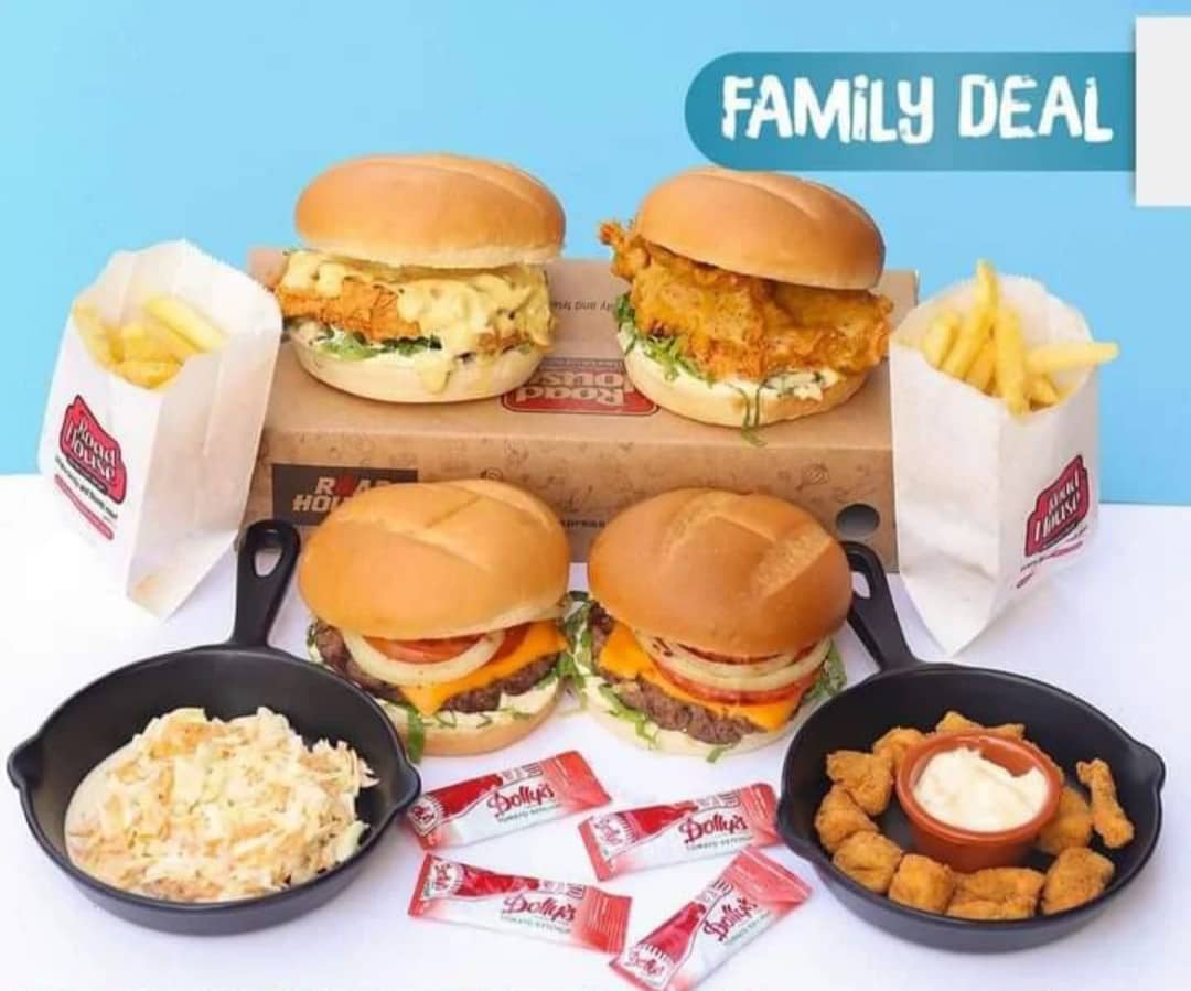 بوكس عائلي ميكس يتألف من : 2 سندويش برغر – 2 سندويش كريسبي – قطع ناغيت – بطاطا مقلية -سلطة كول سلو من محلات الرود هاووس
